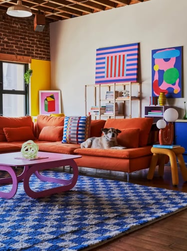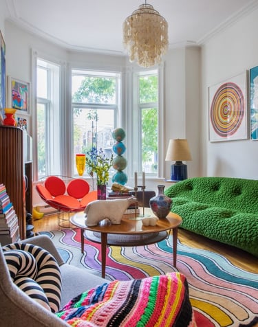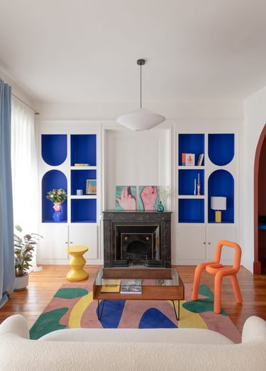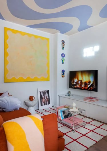 Many people choose to navigate this trend by adding pops of color with contemporary abstract art, designer scatter cushions, or bold, graphic rugs. However, there is another category of decor enthusiasts who are willing to push the boundaries even further. Their homes are a reflection of their adventurous spirit. They don't shy away from combining colors on their accented walls, sleek modern lines of their couch, and even the ceiling - combinations that many would not consider harmonious. The complexity lies in their audacious choice to blend colors, which makes their living spaces even more captivating.