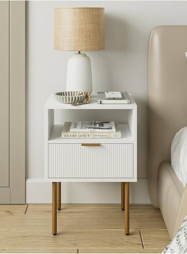 I honestly think this is a must. A nightstand with shelves or drawers can neatly house books, electronics, and other bedtime essentials without looking cluttered.