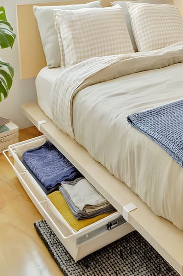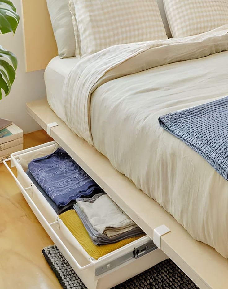 The area under your bed isn’t just for dust bunnies. Consider using rolling storage drawers for clothes or seasonal items that aren't in use.