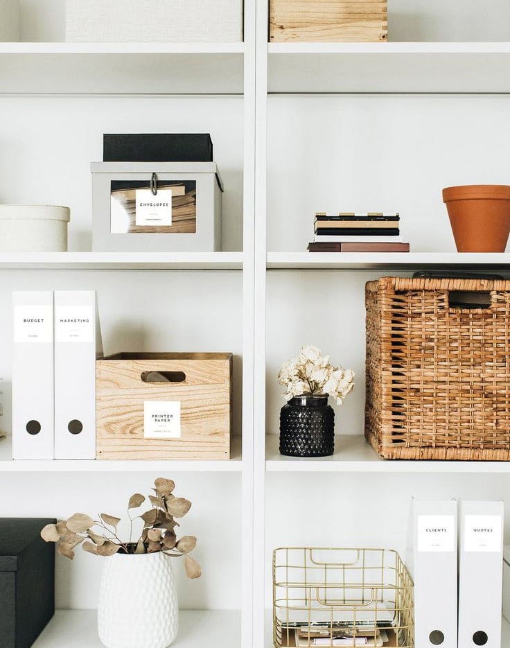 Labeling storage boxes or bins helps to easily identify their contents, making the organization simpler and efficient.