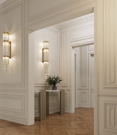 Intricate plaster mouldings or panelling on walls are an iconic characteristic of Parisian apartments.