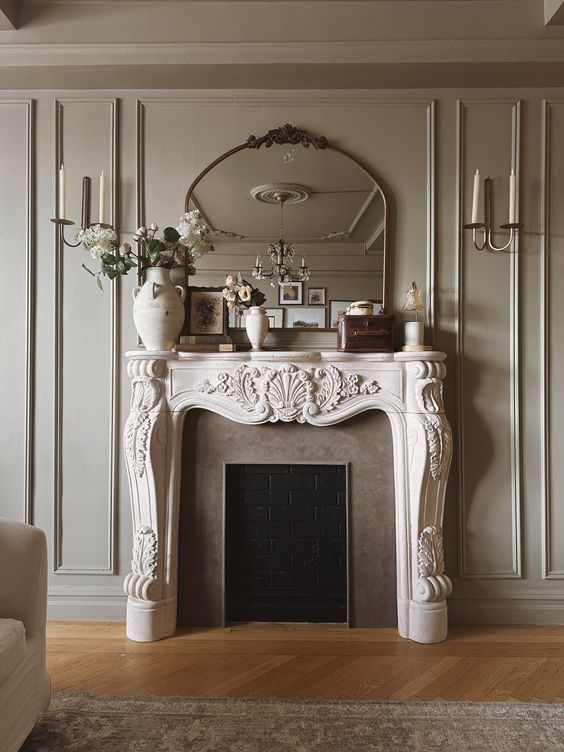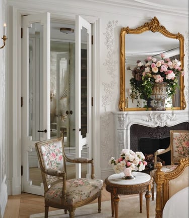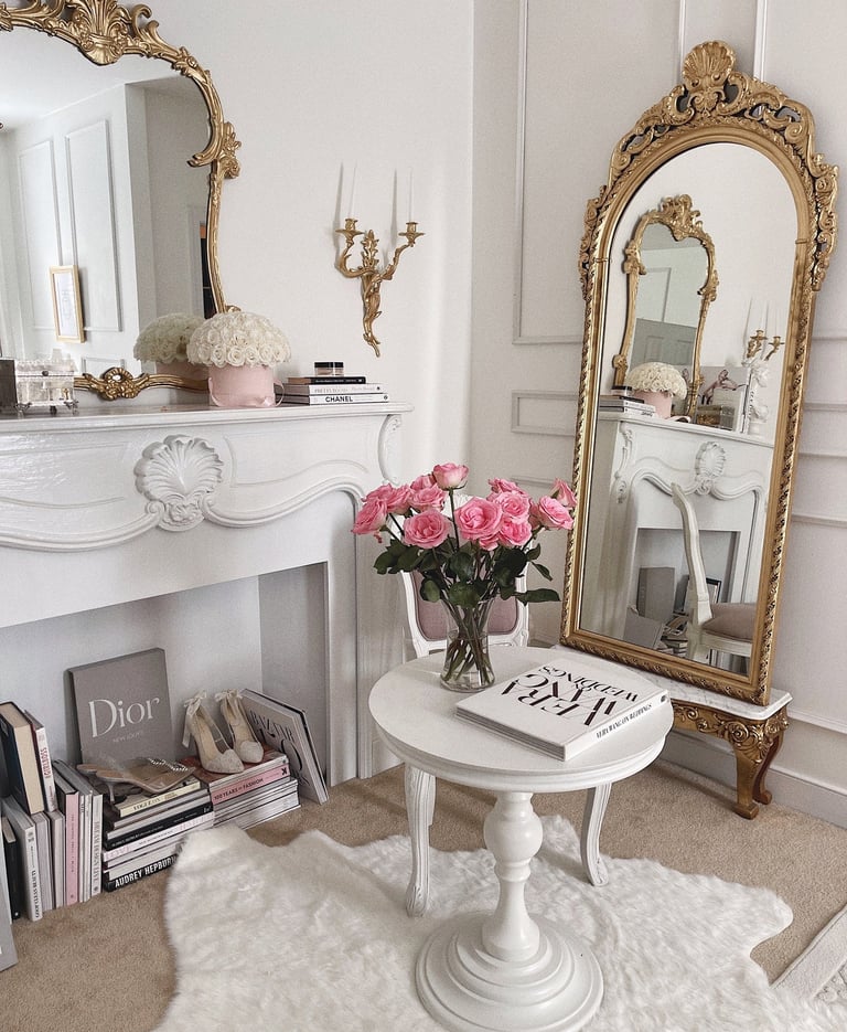 Oversized ornate mirrors not only visually enlarge your room but also add a touch of drama and romance typical of Parisian style. I'd say it is a must-have!