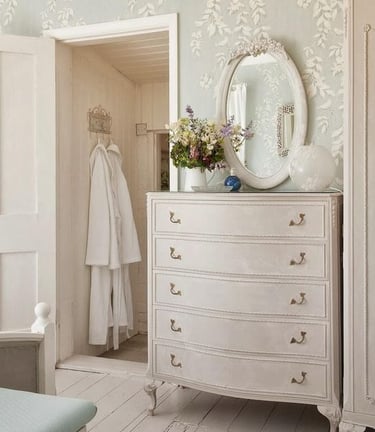 Inclusion of vintage accents like retro clocks, old paintings or antique jewellery boxes introduces a romantic time-worn appeal. Pro tip : find them in thrift or antique stores!