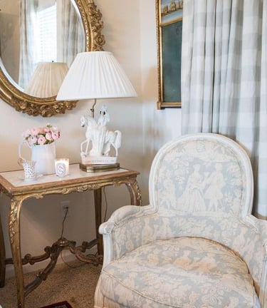 Introduce Toile De Jouy, the classic French fabric, in your bed linens, curtains, or upholstered furniture for an instant Parisian touch.