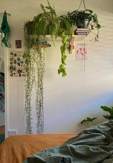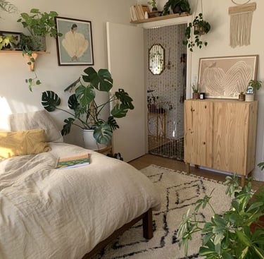 Adding elements of nature can drastically elevate the aesthetic of your room. Houseplants are a great way to add a splash of color and freshness. Not fond of taking care of live plants? You can also add nature-inspired art, use natural fibers like linen and wicker, or choose a floral or leafy-pattern wallpaper.