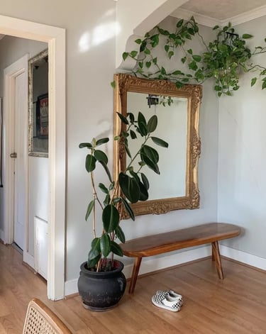 Mirrors are great decorative pieces that can enhance your room's aesthetic. A beautifully framed mirror can be a focal point, whilst also reflecting light to make the room feel larger and brighter. You can hang a large mirror on the wall or lean it on the floor for a casual look.