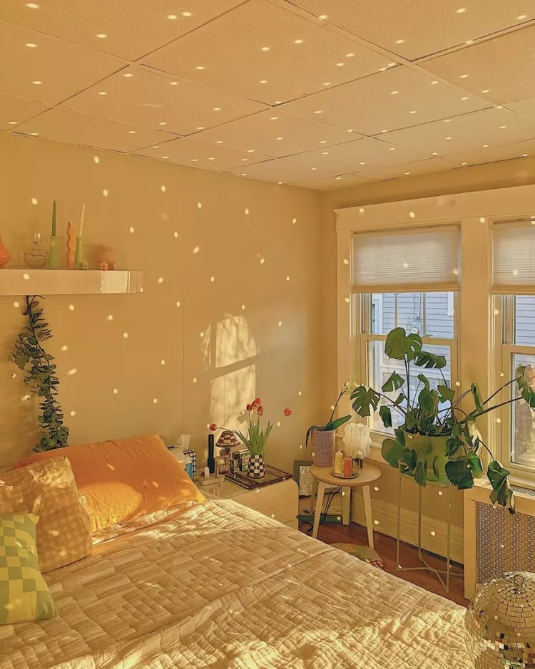 Lighting plays an integral part in dictating the mood of your room. Natural light fills up your room with an air of freshness, while warm and soft lighting can induce a cozy and intimate ambiance. Get creative with fairy lights, lampshades, or a sunset lamp to infuse character into your room!
