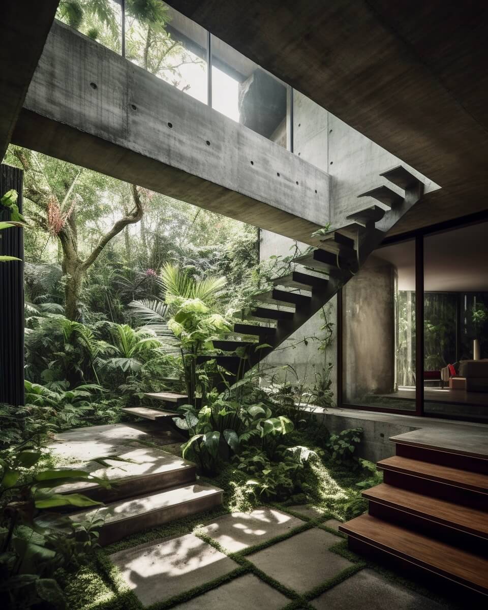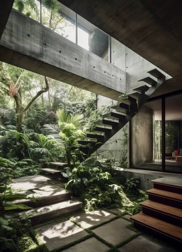 Brutalism, as an architectural style, elicits an intriguing range of feelings and experiences. To me, it exemplifies minimalism, with dominant gray architecture softened by natural plants. The brutalist designs have an evident emptiness, which may be attributable to their restrained color palette. Despite this austerity, there is a certain futuristic allure, pointing to a day when our homes would effortlessly blend with the surrounding environment, becoming perfectly linked with nature's embrace in the centuries to come.