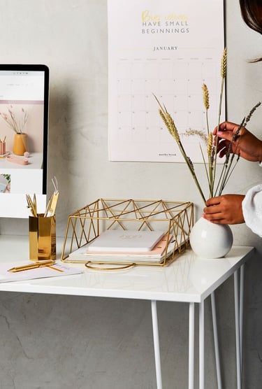 Have a designated spot for incoming paperwork or tasks that need attention. Those inboxes prevents clutter from piling up on your desk.