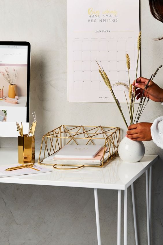 Keep decorative items to a minimum. A few inspiring or motivating items are great, but don't overdo it as excessive decor can be distracting.