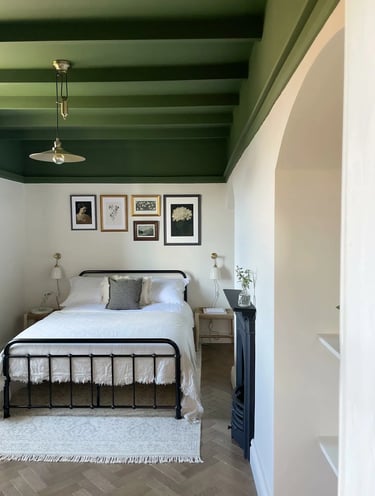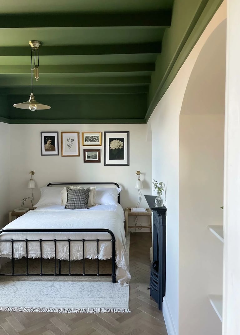 Even though it can give the impression that the space is smaller, I believe the green truly works well with the bedroom's decor.