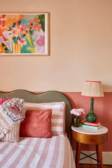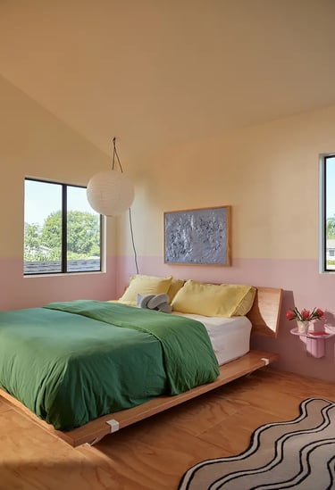 I was recently bored with my bedroom, so I looked for ideas on Pinterest and came across one main element that piqued my interest: split-painting your walls! I've been drawn to pink the most, but here are some of the other colors I discovered. If you're bored with any area in your house, this concept can inspire you as well!