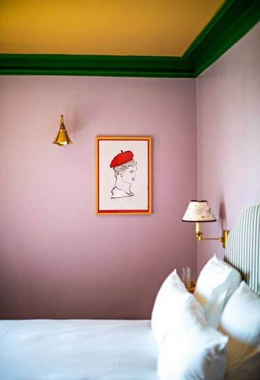 Why not do it on the ceiling as well? I think this hotel room looks absolutely vibrant!