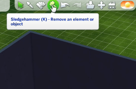 Use the Sledgehammer on top of the Sims 4 window to select the wall or object you want to remove.