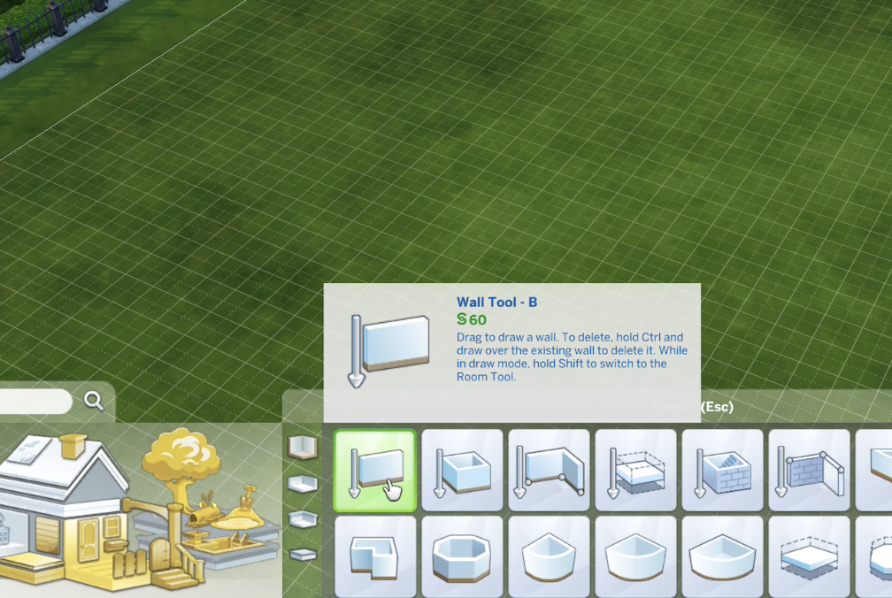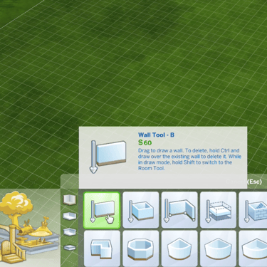 You can build one wall at a time by selecting the Custom Room Tool and then the Wall Tool.