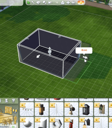 Second, if you build shelves on the wall, you may not be able to add objects to them. So you'll need to raise them. Select the object you want to raise and then press 9 (raising) or 0 (bringing down).