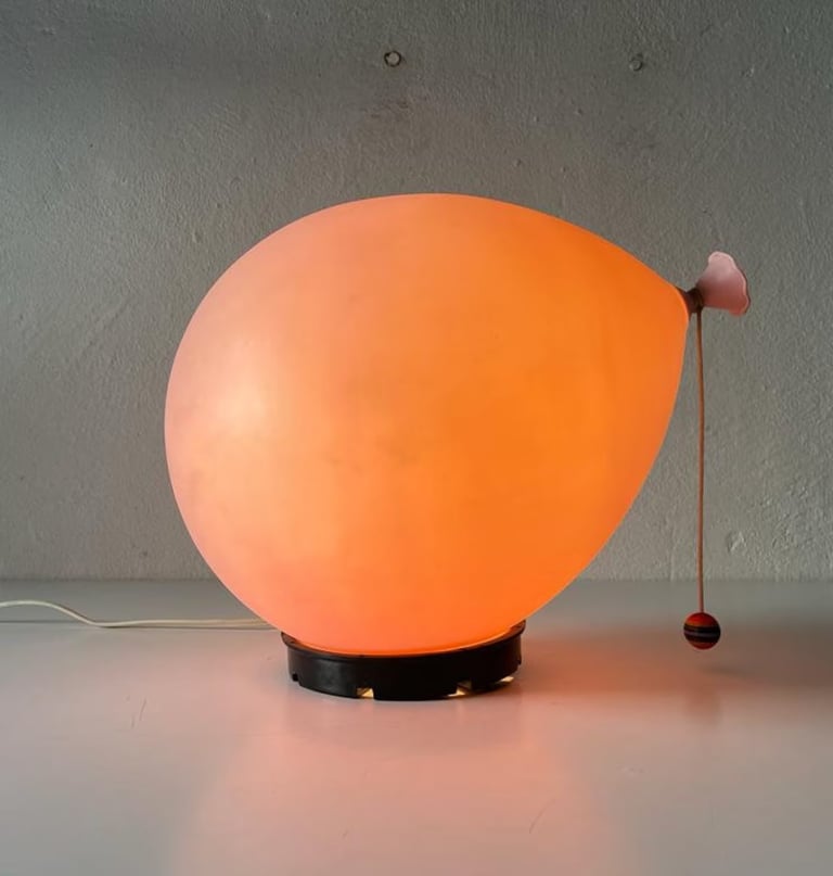 The Bilumen "Balloon" lamp adds just the right amount of whimsy to your interiors. This vintage lamp, designed by Yves Christin in 1975, may have an asymmetric form that deviates from the quintessential mushroom lamp style, but it carries the same retro vibe. The diffused light peeping out from the balloon-like shape brings a playful element to your decor.